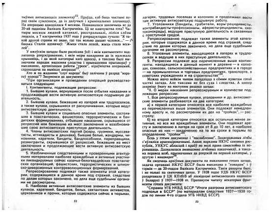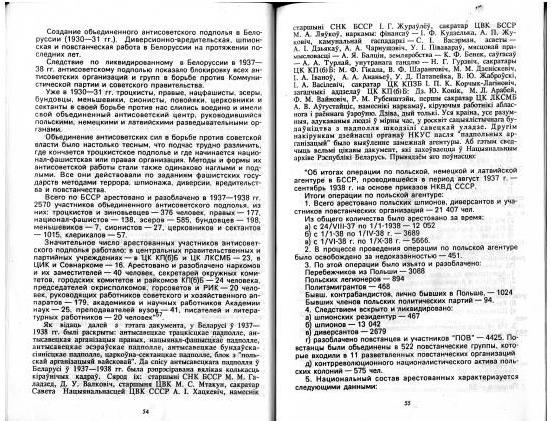 Во исполнение приказа 00447 имеет место попытка притянуть за уши: Справка УГБ НКВД БССР «Итоги разгрома антисоветского подполья в БССР» (по материалам следствия 1937–1938 годов по линии 4-го отдела УГБ НКВД БССР) (стр. 53 из книги Адамушко).
