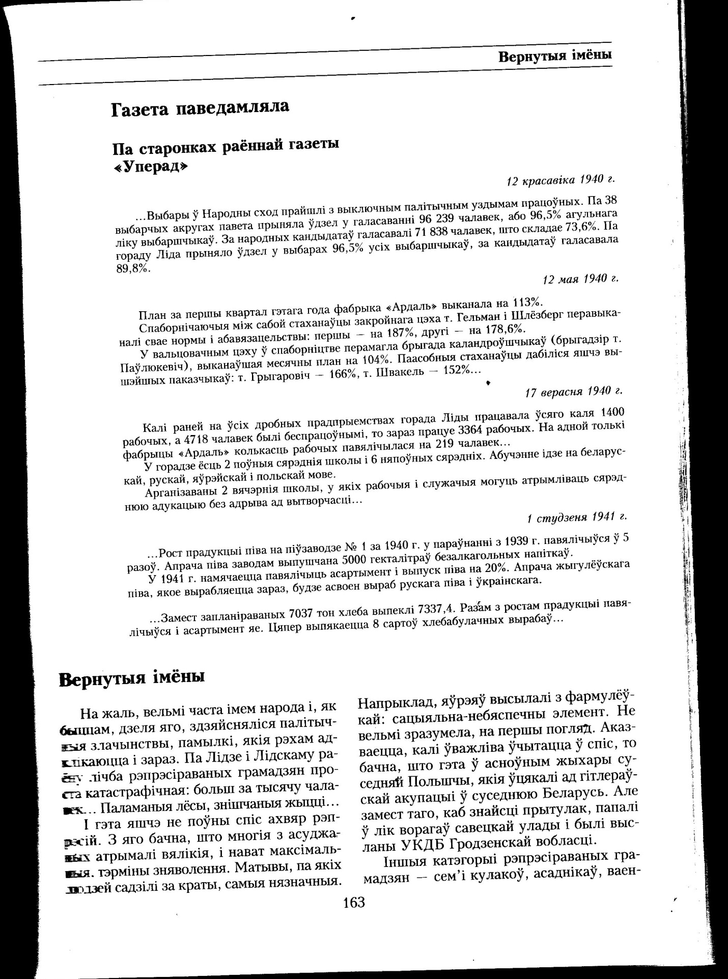 Но истинное лицо и архивистов и нашего КГБ я открыл, узнав, наконец, кем наполнили те самые 57 000 репрессированных за период 1935–1940 гг. (85 000 репрессировано, из них 28 000расстреляно). Узнал чисто случайно после того, как мне попалась книга «ПАМЯЦЬ» одного из районов Западной Беларуси (опять же, у меня есть оригинал).