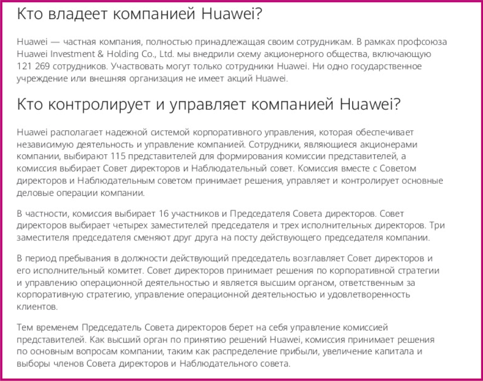 Мы можем спокойно привести вам пример огромной компании, которая существует по принципу коллективного хозяйства — это “Хуавей”. Основателю компании принадлежит чуть более одного процента акций, а все остальные разделены между работниками. Об этом говорят те самые, западные эксперты, к которым, опять же, так любят обращаться леваки за информацией про социалистический Китай. Мол, компания совсем не правильно работает, ведь как можно 99% прибыли отдавать каким-то рабочим?! Не по-буржуински это! Посмотрите лучше на Гугл, там только те самые “эффективные менеджеры” (в кавычках) имеют право владеть акциями компании. Так ещё и 40% работников Хуавей занимаются разработками инноваций! Представляете? В Гугле точно такая же доля работников являются менеджерами! О чём это говорит? Да о том, конечно же, что капитализм не правильный у этих китайцев. Не может же компания столько тратить на разработки, явно государство вмешалось!