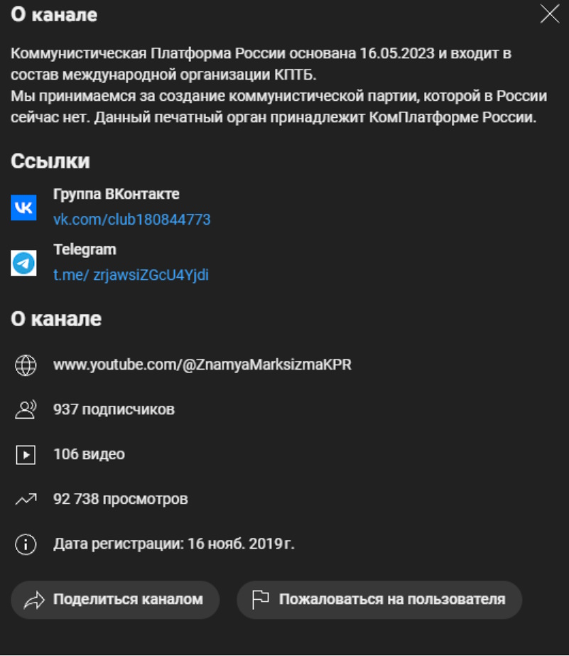 Итого мы имеем: ни на одном ресурсе нет номера счета, куда можно перевести средства. Единственной площадкой для донатов остается ВКонтакте, но там единственный донат в 800 рублей. Санечка, на такие бабки ты смог отправить активистов в Казахстан? Откуда финансирование, а, Санечка? Не КПТБ ли тебе помогла, в которую входит твоё троцкистское крыло? Да только откуда, в свою очередь, уже у них финансирование? Ты не расскажешь своим слушателям? Так у вас ещё и несостыковки в описании: заявляете об основании 16.05.2023, а в вашем Телеграмм-Канале скриншот от 2022 года, где вы заявляете, что организации два года. Стоит еще отметить одновременную организацию украинского отделения КПТБ, которую еще не накрыли, что странно. Но этому у меня есть теория, как разумное объяснение почему так. Её попросту не существует в реальности и ведётся она не с Украины, а из России самим Маевским.